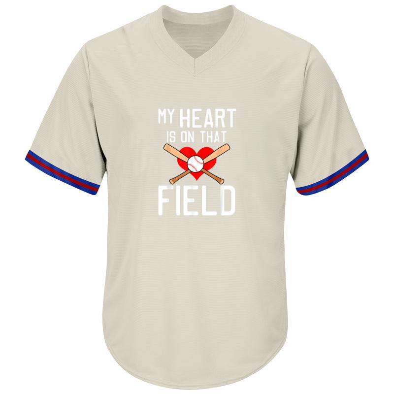 Elevate your baseball gear with My Heart Is On That Field Baseball Baseball Jersey baseball jersey. This masterpiece showcases your unique style and love for the game. With intricate embroidery, it becomes a true work of art.