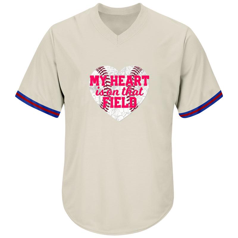 Elevate your baseball gear with My Heart Is On That Field Baseball Mothers Day Baseball Jersey baseball jersey. This masterpiece showcases your unique style and love for the game. With intricate embroidery, it becomes a true work of art.