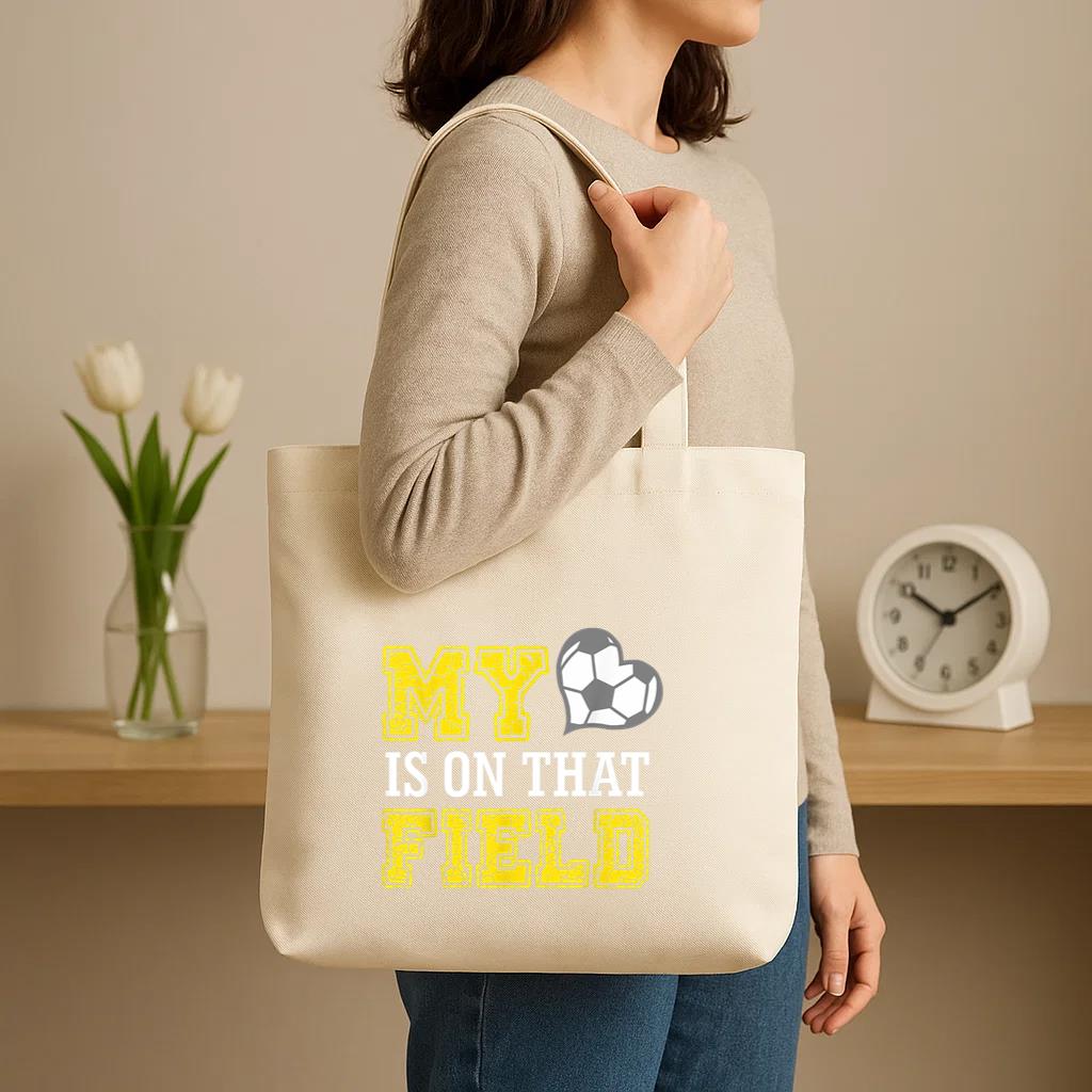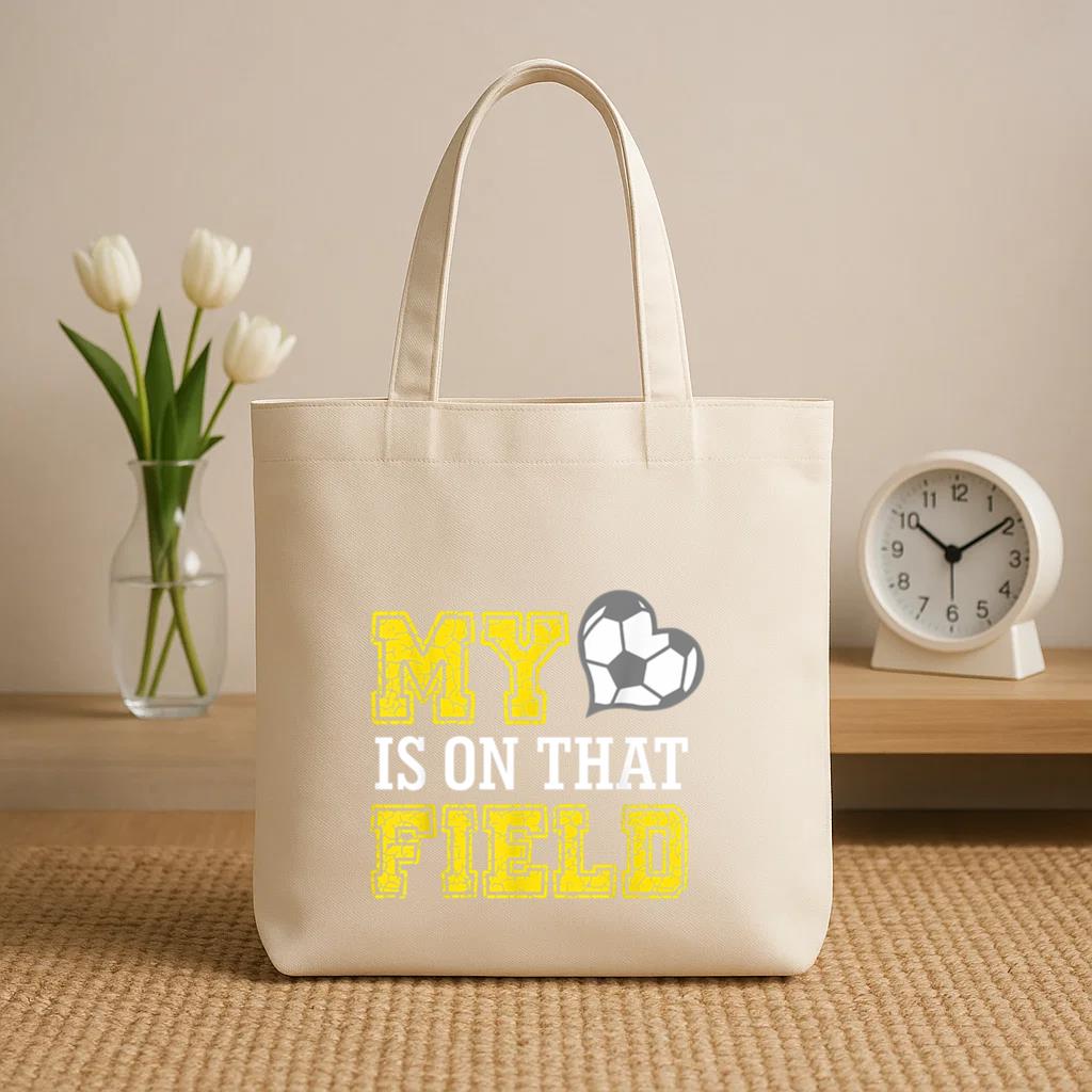 Chic, durable, and reusable , this My Heart Is On That Field Soccer Ball Mom Mothers Day Canvas Tote Bag Canvas Tote Bag is your daily go-to or a thoughtful gift for any occasion.