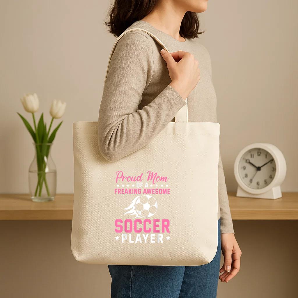 Chic, durable, and reusable , this Pround Mom Of Soccer Player Canvas Tote Bag Canvas Tote Bag is your daily go-to or a thoughtful gift for any occasion.