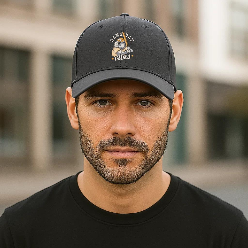 Top off any outfit in style , this Rat Holding A Baseball Bat With The Words Gameday Vibes Cotton Baseball Hat Cotton Baseball Hat is a must-have for sunny days or sporty looks.